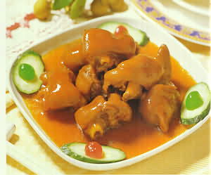 若喜甜味可酌量加入少许的糖。 将肉整块煮熟切块后,再红烧则形状比较方整美观。