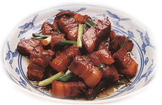 五花肉或前腿肉 1 斤2两,五花肉洗净切块放入锅内,再加蒜及料酒,酱油,水,味精,葱,盖锅以小火焖煮约30分钟,(煮时需翻拌以免烧焦)至汁将收乾时 入葱段即成。