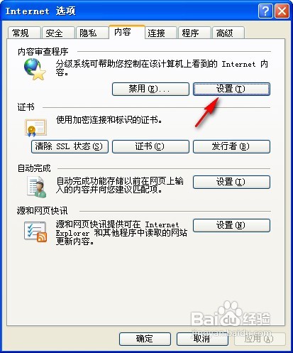6、设定可登录的网址。点击内容选项卡中的设置。