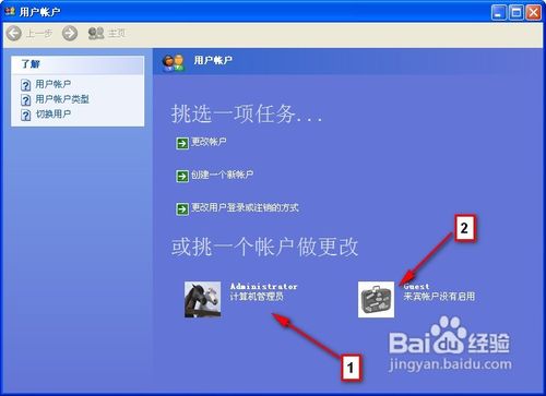 4、设定来宾用户。点击下图中的“2”,启用来宾用户。