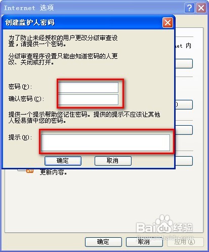 3、如果是第一次,那么需要设定密码、以及提示(必须输入)。如果是第二次,则无需进行此步。