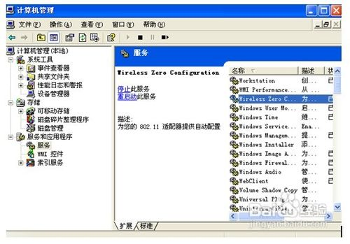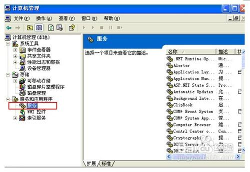 3、然后是网络的配置。进入计算机管理界面后打开“服务和应用程序”菜单,双击进入“服务”界面。