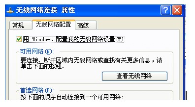 4、进入“控制面板”——“网络连接”界面,右键点击“无线网络连接”——“属性”,选择“无线网络配置”菜单,在无线网络配置中勾选“用windows配置我的无线网络设置”