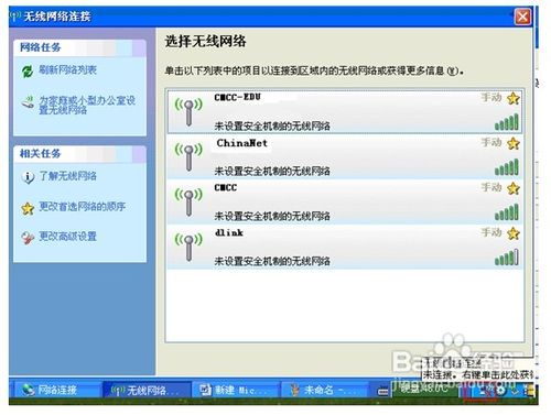 SSID(Service Set Identifier)用于区分不同的网络,也就是不同的路由器,为便于区分,请在路由器里面设置个性的方便记的名称。搜索到的无线网络中双击选择CMCC的接入点连接,如下图所示