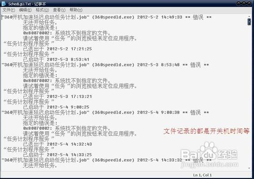 如果你的系统安装在c盘,那么找到c:\windows\SchedLgU.txt文件,里面有你自这个系统安装以来曾经工作过的时间,包括哪天开了机 开机时间 关机时间!(ps:如果你的系统使用过优化大师,360等系统工具优化清理过,那么记录可能已经清除掉了)。