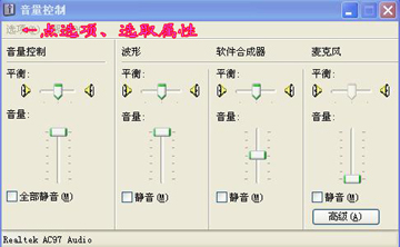 将音量控制中的麦克风选项卡中静音的勾去掉(双击屏幕桌面右下角的小喇叭--选项--属性,显示下列音量控制中麦克风的勾打上)。