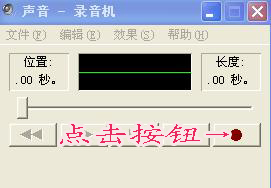 录音步骤:点击“开始-程序-附件--娱乐-录音机”再点录音按钮就是那个红色的按钮就可以开始录音。录制完声音,保存后桌面生成了001的声音文件。