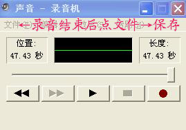 方法很简单,先空录,到了60秒的时候我们直接再按“录音”那个红色的圆按钮,于是又可以录到120秒了,到了120秒的时候,再继续按“录音”按钮,哈哈,就有180秒了,而且这是取之不尽用之不竭的,要录多少就录多少,直到把你的硬盘都塞满。好了,空录到你需要的时间长度的时候,按“停止”按钮,停止录音,千万不要关闭这个文件哦!把录音倒到头,可以正式录音了!按下“录音按钮”,就一切OK了,当然,这里有个拿话筒姿势的问题,要记得把话筒放在音箱和你之间,这样才会有比较好的录音效果。多试几次,挑选自己最满意的一次吧,然后保存文件,下面就可以准备将录好的wav文件转成其它格式了,以便在网上传播了。