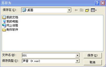打开保存对话框来保存已录制的声音。保存后桌面生成了001的声音文件。